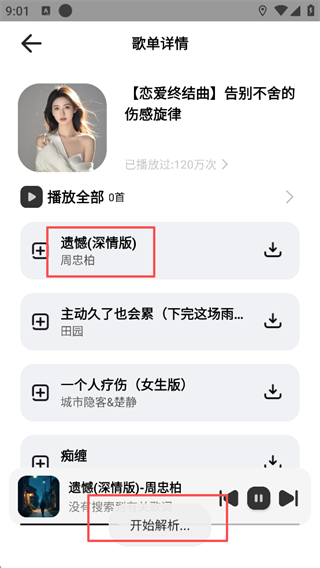 2、点击你想听的音乐下面就会出现开始解析等待一会即可开听