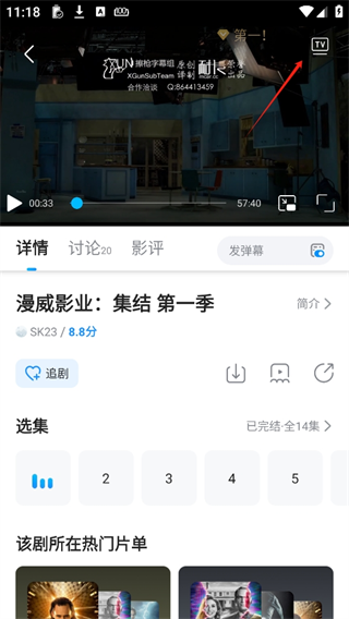 1、找到自己喜欢的剧之后点击右上角的TV。