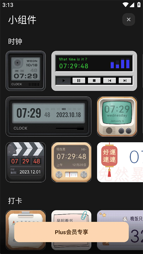 3、您也可以点击上方的小组件功能,在此页面中添加小组件到桌面上,但是此项服务需要开通plus会员;