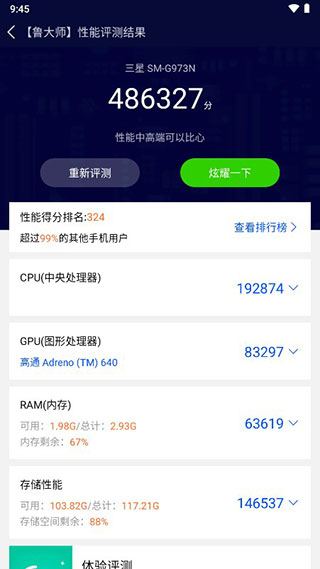 4、等待检测完成,就能得到跑分成绩了。