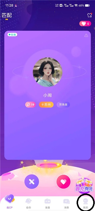 1、打开cp速配App后点击我的