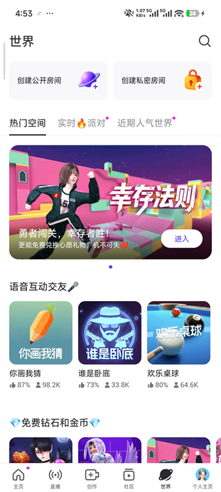 和朋友一起体验情景剧、派对、聊天等多种主题的世界吧