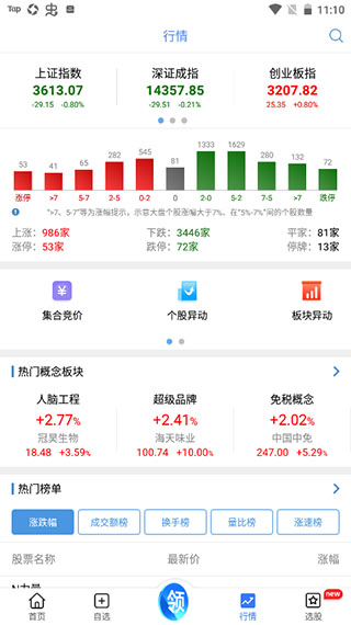 4、进入行情,查看股票实时行情,了解实时股票动态