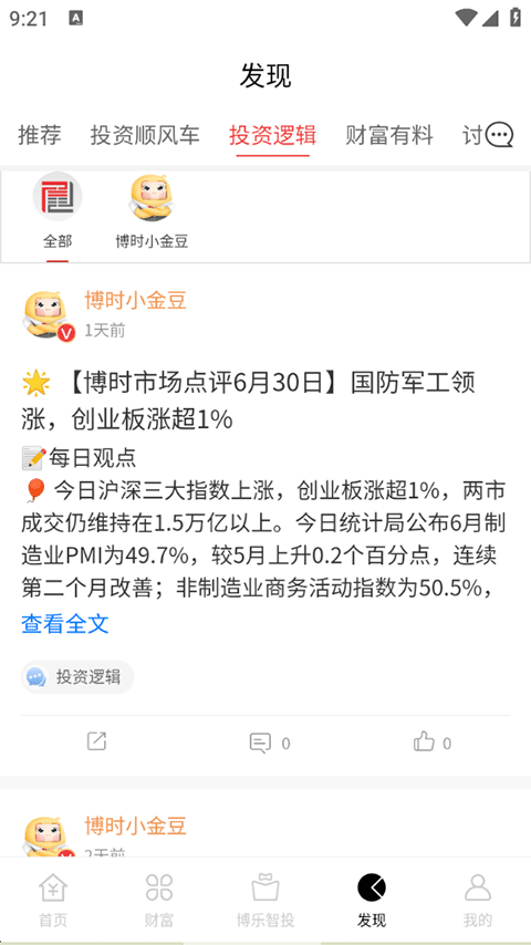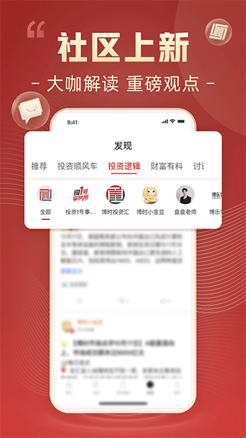 3、在发现页面有各类社区投资理财大神发布的咨询文章,帮助您了解最新动态;
