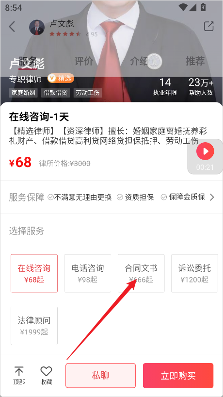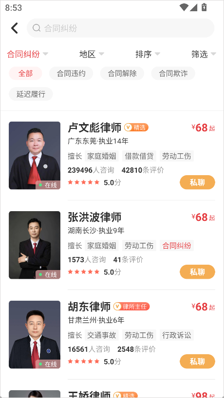 2、这里平台提供了一些非常专业的律师,根据自己需求选择