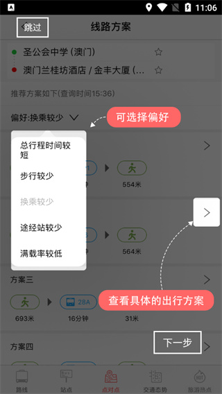 【换乘方案】:换乘结果按距离/时间/地铁/换乘次数等排序;
