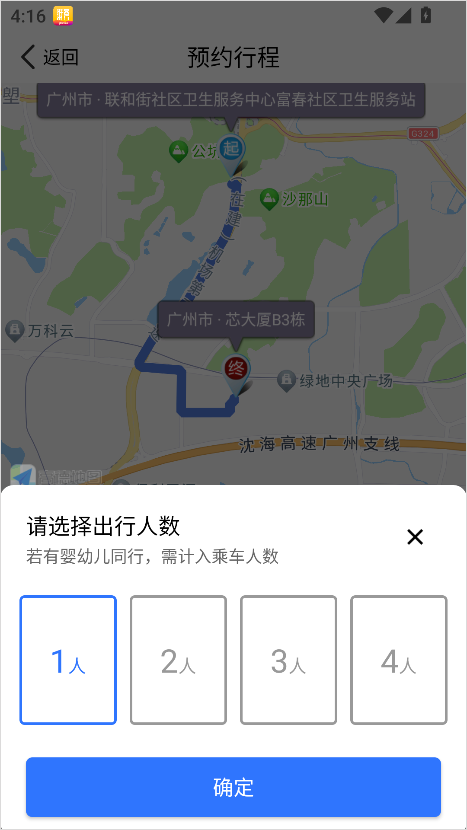 3、填写出行人数、行李数量等出行细节,方便司机了解实际需求;