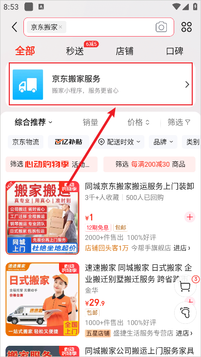 打开京东APP搜索“京东搬家旗舰店”即可体验