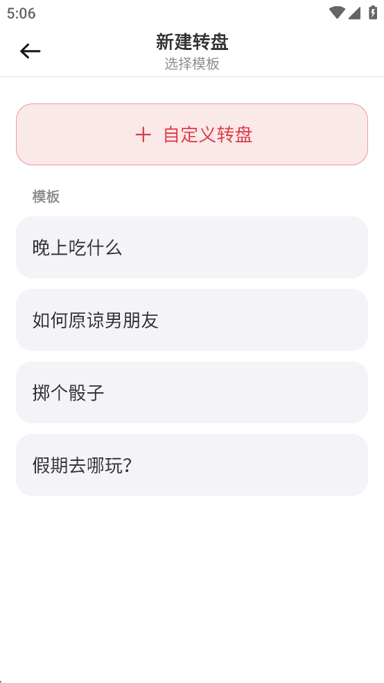 1、大转盘小决定App,点击右上角更多,然后点击新建