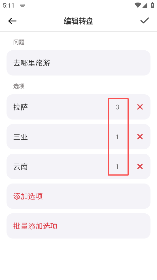 大转盘小决定App是一款可以帮你做抉择的转盘软件,如果你每天都在纠结该吃什么、该穿什么,大转盘小决定可以轻松帮你克服选择困难症。大转盘小决定App使用也非常简单,你只需要将你的所有想法填写在转盘上,然后启动转盘,最后指针指向的就是为您作出的决定,帮助你在选择有困难的时候节省大量的时间和精力!