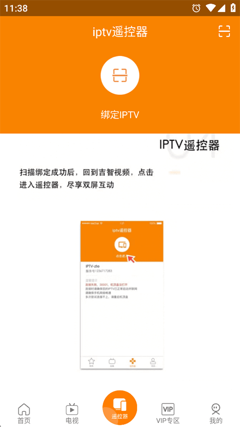 3、在手机绑定页面使用吉智视频App扫一扫,扫描绑定二维码,即可绑定成功,每台IPTV最多可绑3个手机号。