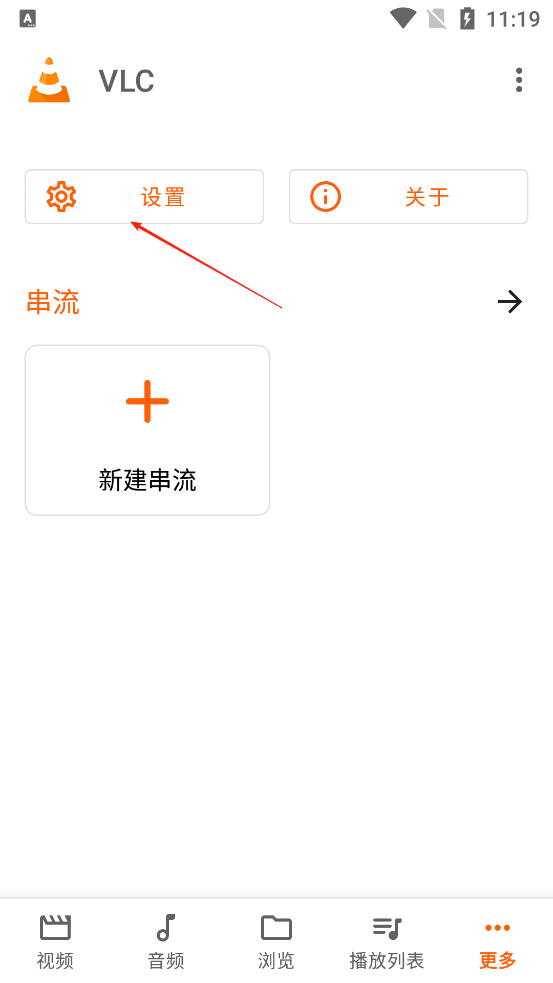 1、进入VLC播放器,点击更多,找到设置并且点击。