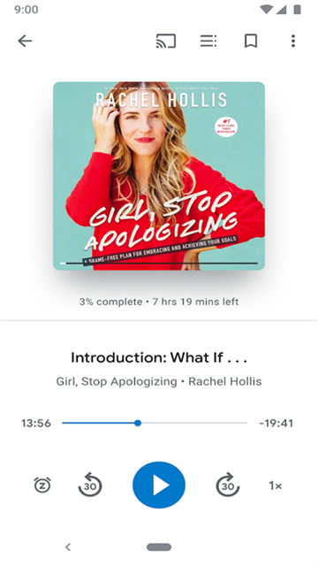 • 无需动手即可阅读:可使用 Google 助理,通过语音控制有声读物。