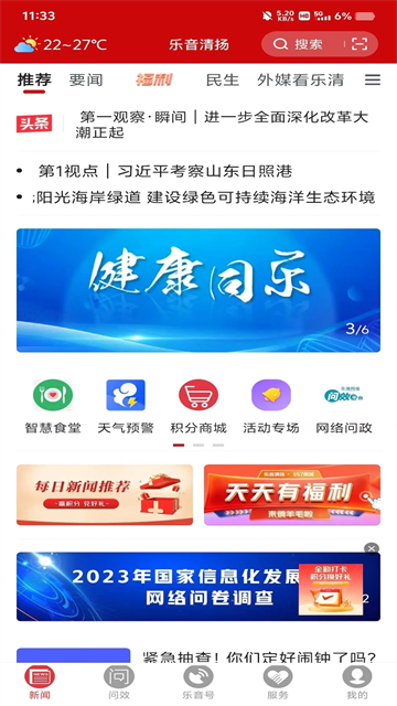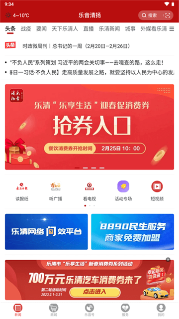 乐音清扬app立足乐清本土,是集新闻资讯、政民互动、视听直播、便民服务等于一体的热点资讯应用服务平台,是乐清新闻宣传和对外推介的平台,是乐清传播主流价值观的重要宣传阵地。