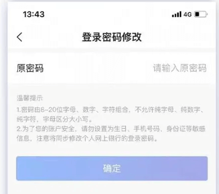 在“登录密码修改”页面输入原密码(录入原密码时,报错超过5次后会被锁定,可以通过忘记密码功能重新设置密码或等待24小时后重新录入正确的原密码才可继续登录APP)