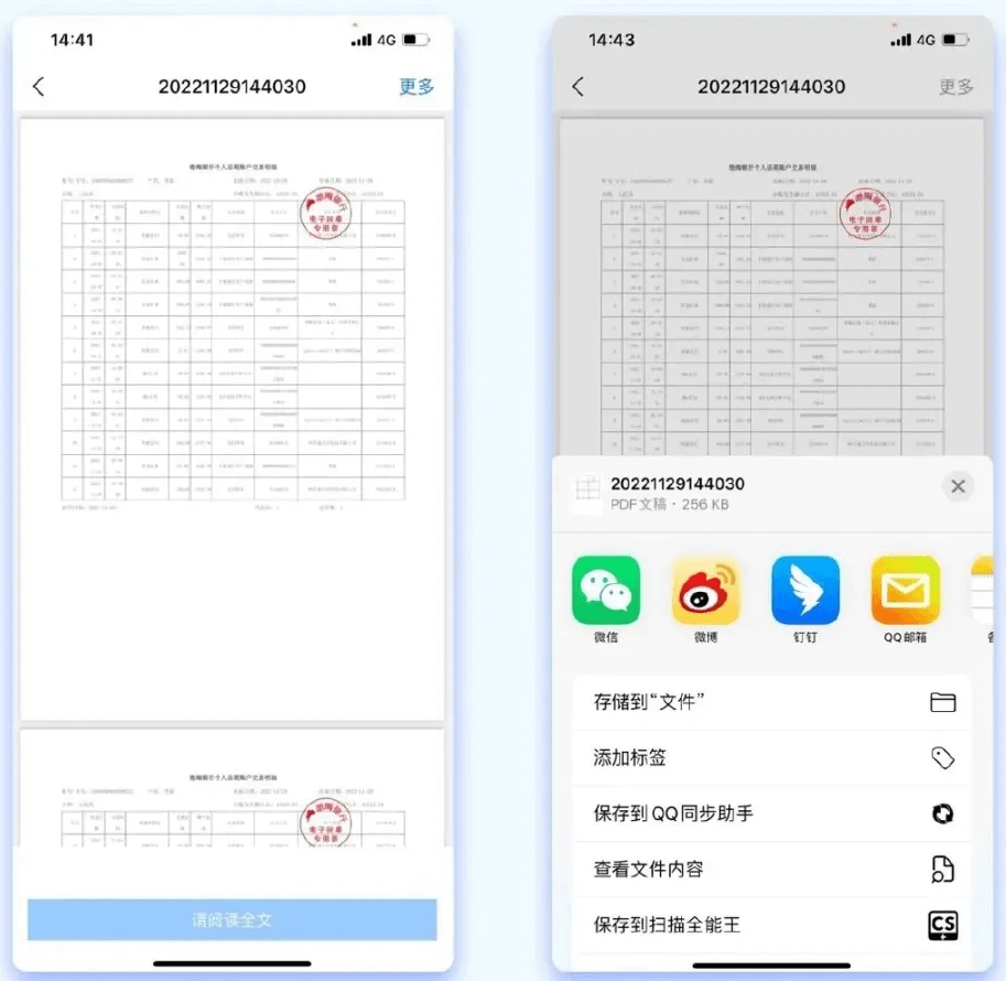 5、生成交易明细文件,包含交易时间、交易金额、账户余额、交易渠道、对方卡号、对方户名、摘要、会计流水号,点击右上角“更多”,可以存储到文件或转发微信、邮件等渠道