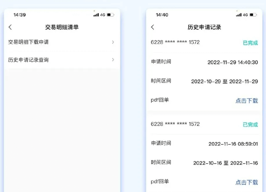 4、点击“历史申请记录查询”,找到最近一次下载申请记录,“点击下载”