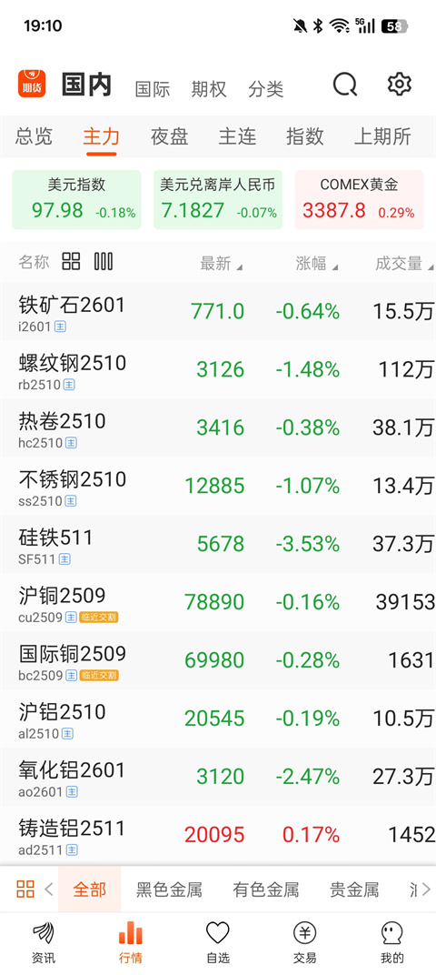 国内外期货行情,支持金属、能源、指数、农产品等商品期货、期权行情