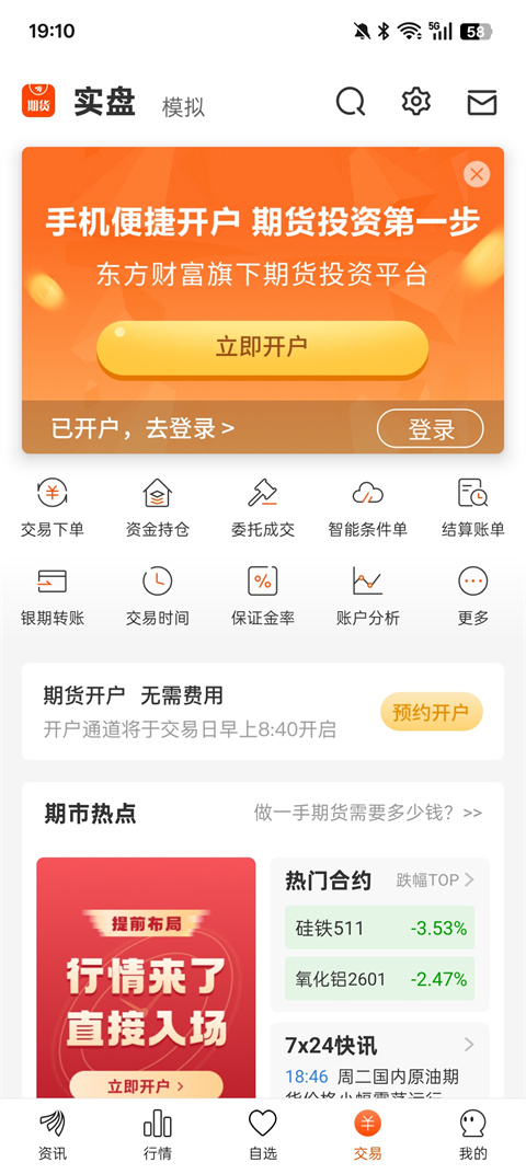 v6.21.0东方财富期货App是一款专业的一站式投资服务软件,提供期货账户开立、交易、行情、资讯、社区等服务。软件提供海量一手期货行情信息,实时行情快速更新,在线交易方便简单,东方财富期货App还有真实模拟期货交易板块,即使是新手也能快速上手!