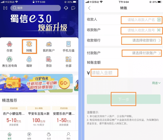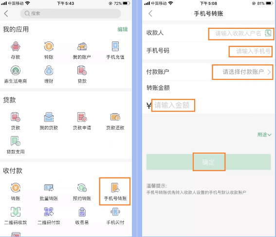 2、需要双方均开通四川农信手机银行,收款方手机号码已绑定四川农信账户,款项可实时到账。
