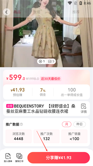 3、这边可以看到有分享赚xxx的钱,佣金多少