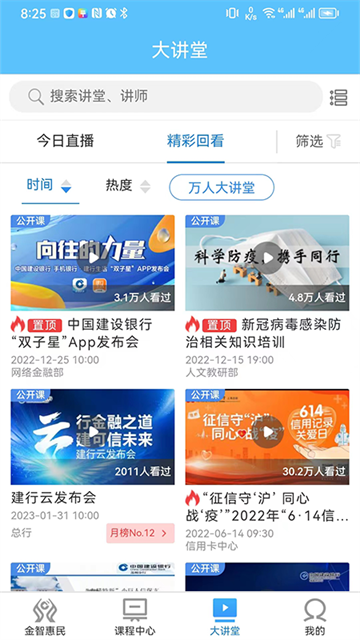3、大讲堂:今日直播,精彩回放,不错过任何一段课程;