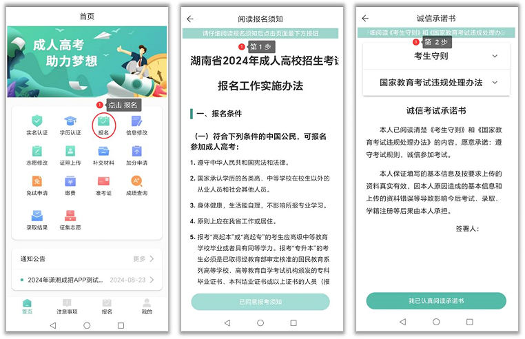 潇湘成招App报名操作流程