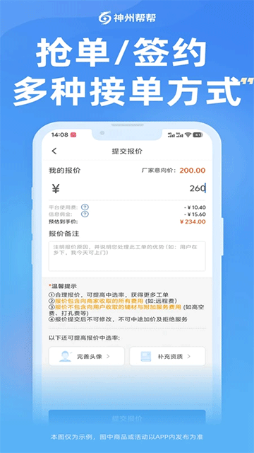 1、抢单报价:智能推送附近可抢工单,师傅自主抢单报价,接单自由。