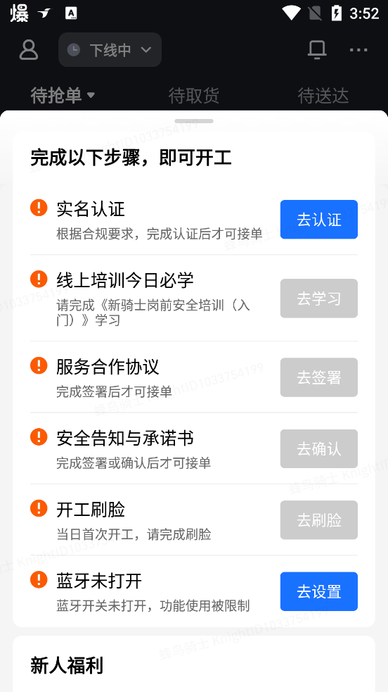0门槛:新人免缴保证金,不限学历和经验,认证后即可开启跑单(新骑士无装备、制服等硬性要求)