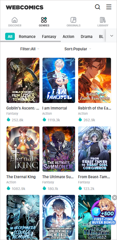 v3.7.30WebComics是一款漫画阅读软件。WebComics的内容库丰富多样,涵盖浪漫爱情、动作冒险、奇幻玄幻、BL/GL、恐怖、校园、剧情深刻作品等多个类别,基本覆盖了主流漫画受众的阅读喜好。除了大量经典和热门系列外,平台也会不断更新新作品,保持内容库的活力与发展。WebComics也提供每日限时免费阅读福利,部分作品的章节可在特定活动期间免费获得,同时平台通过内购机制支持创作者和运营模式,用户可以根据自己的需求和付费意愿选择适合的阅读方式。
