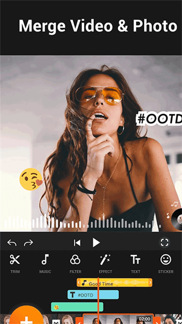 【全能视频编辑】视频轨、音频轨及其他素材轨多轨编辑;支持时间轴缩放编辑,视频精确剪辑;添加视频,照片,图像,动画贴纸,文本,轻松制作生日,纪念日,旅行vlog,幼儿成长等主题视频。