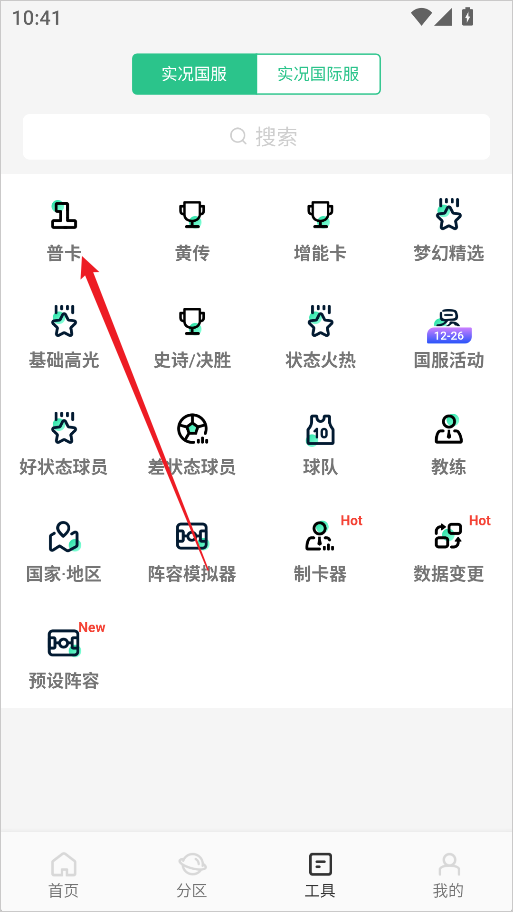 2、根据个人需求选择球员卡类型,这里以「普卡」为示例。