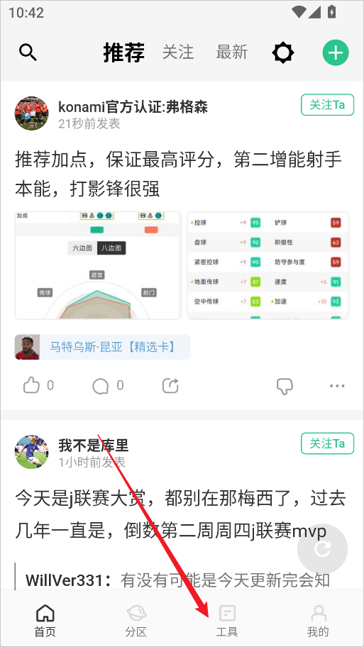 1、打开大众评球App,在底部导航栏中进入「工具」页面。