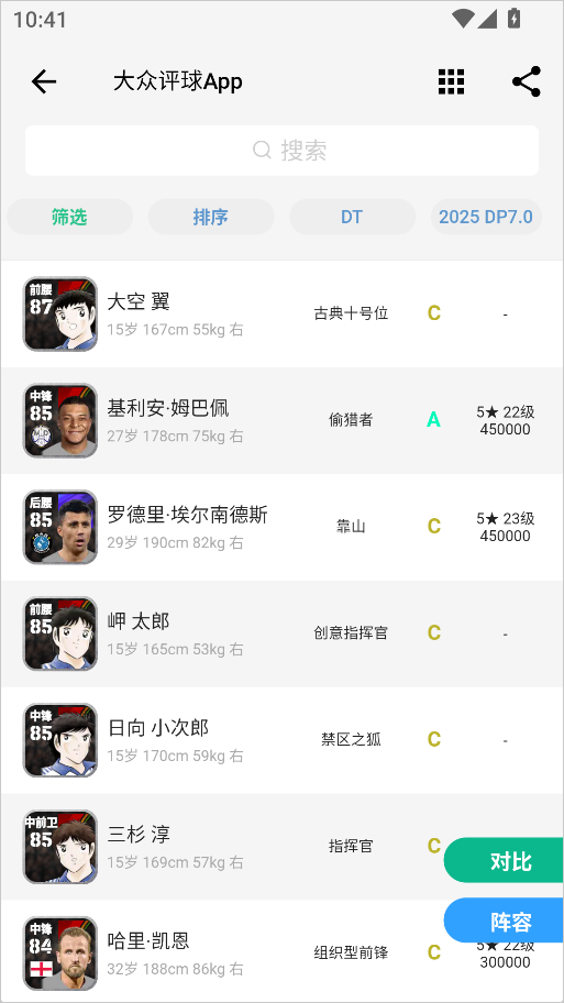 v3.9.18大众评球App是一款为广大热爱足球的朋友设计的足球球员数据库软件。用户在这里无需复杂学习成本,就能快速查到球员的基础能力值、技术特点与位置属性。无论你是想了解某位当红球星真实水平,还是对冷门联赛、潜力球员感兴趣,都可以通过国家、俱乐部、注册位置等多维条件进行筛选,快速定位目标。大众评球App支持最多四名球员同时对比能力值,这一点在实际使用中极具价值。比如当你纠结于“这名中场和那名中场谁更适合体系”“两名前锋到底差在哪”时,通过直观的数据对照,往往比主观印象更有说服力。
