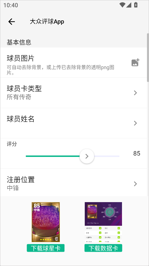 2、按照提示填写相关信息,自定义属性后即可生成专属球员卡。