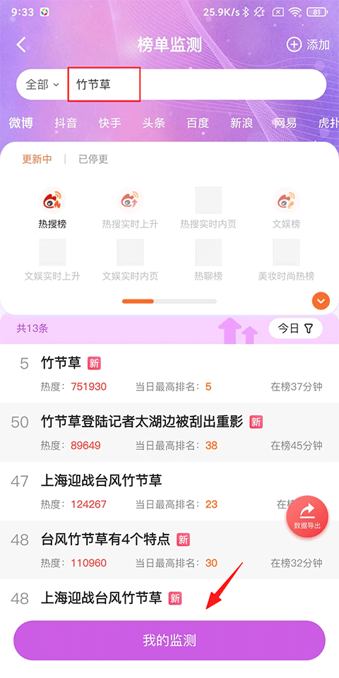 7、专业榜单检测:搜索热搜词、话题关键词等;
