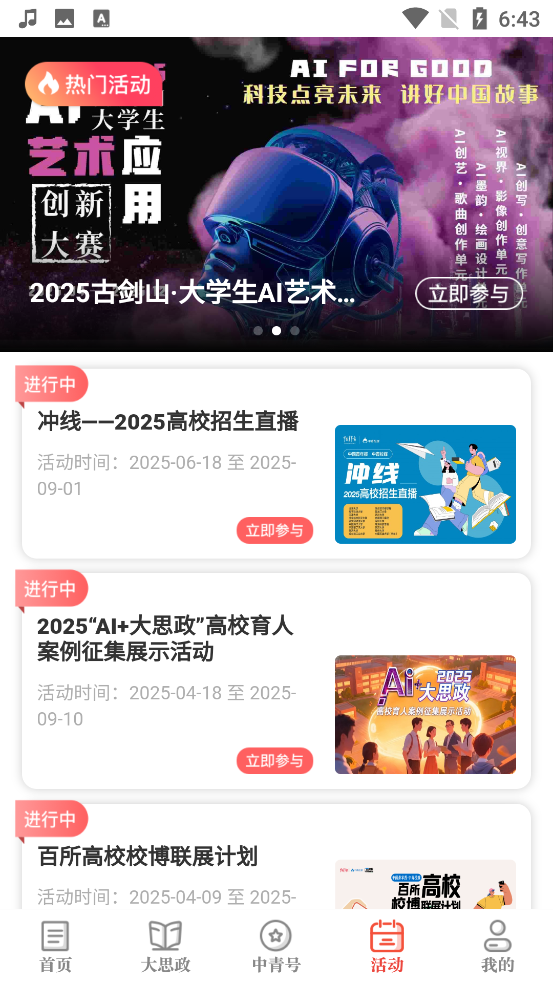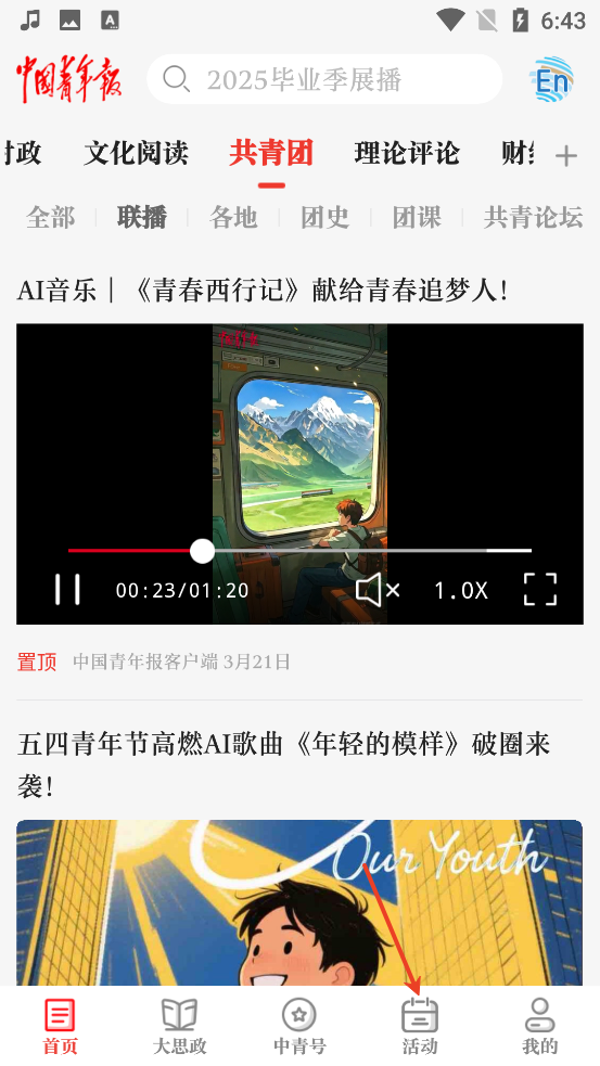 1、打开中国青年报App,点击活动