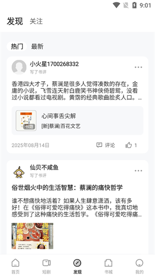 查看用户发布的书评动态,分析书籍