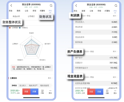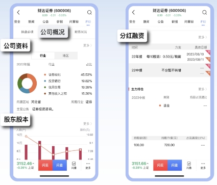 财达证券app个股详情页-F10及数据功能操作指南