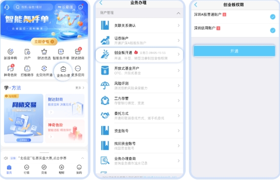 ● 财达股市通APP>首页>业务办理>创业板开通