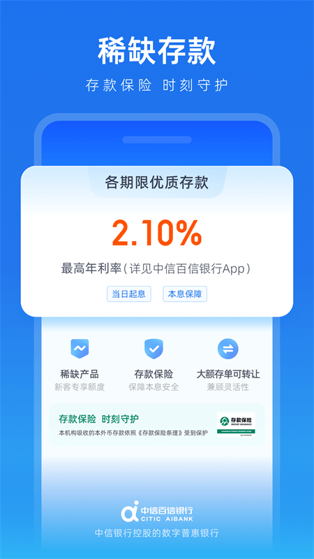 v5.61.0百信银行APP是一款由中信银行控股、银保监会批准设立的国有背景数字银行软件,为用户提供涵盖银行存款、理财投资、保险保障、信用借贷等一站式服务。区别于一般互联网金融平台,百信银行具有真实银行资质与合规监管保障,安全性更高,产品透明度也更强。百信银行app界面简洁易上手,支持全流程线上操作,贷款无需面签、额度灵活,理财产品低门槛、高流动性,适合大众理财新手和年轻用户。无论是日常存取、资金周转,还是理财增值,都能在百信银行找到匹配的服务方案。