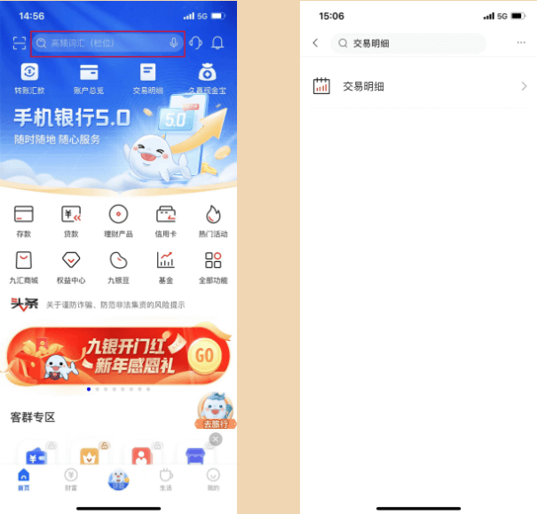 点击顶部搜索栏,搜索“交易明细”