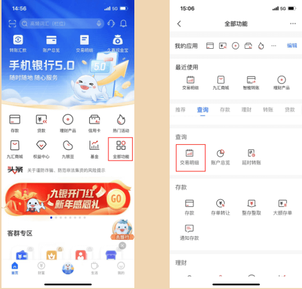 九江银行app如何查询交易明细