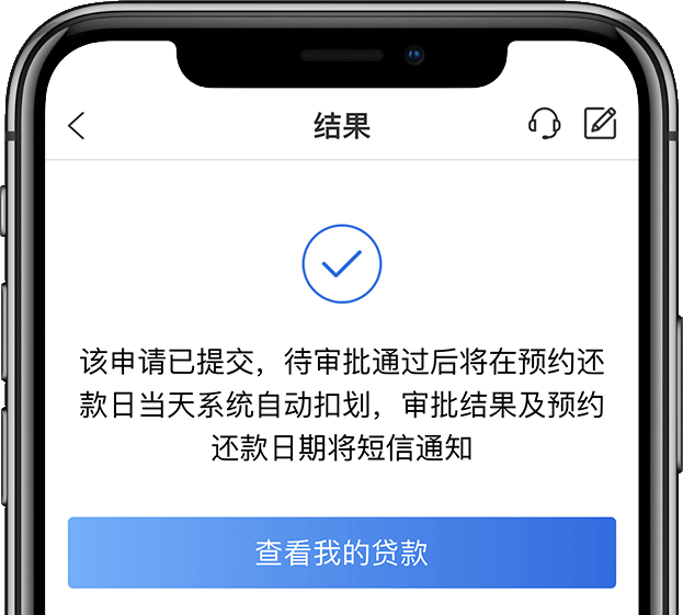 审批通过后,将发送审批结果短信至您的短信签约手机号或核心预留手机号,包括应还金额、还款卡号和还款日期等。请您在还款日之前存入足额资金,避免扣款失败。