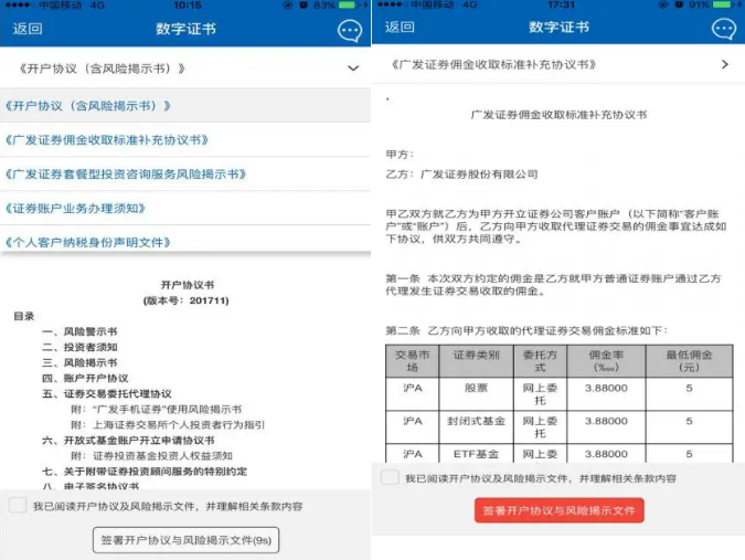③ 标准版开户 APP 默认营业部网上开户佣金费率,无佣金套餐选择,具体收费标准可在《广发证券佣金收取标准补充协议书》中查询。