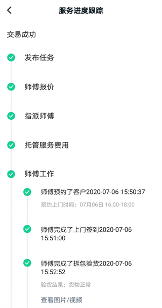 4、【服务中】=指派师傅成功,师傅开启服务。