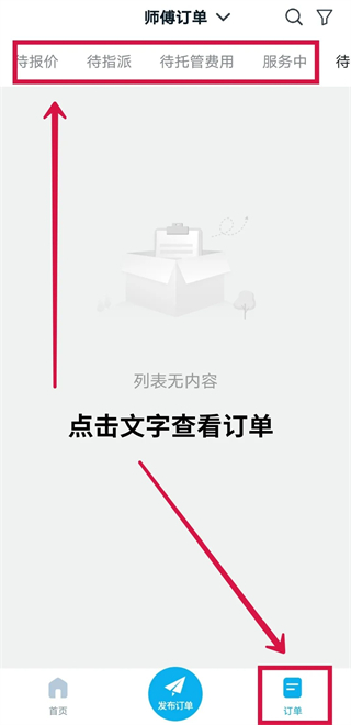 1、登录万师傅企业版APP点击【发布订单】按钮下单;