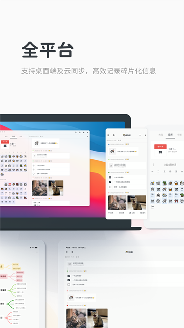 1、全平台:全平台支持,让您随时随心记录或回顾。