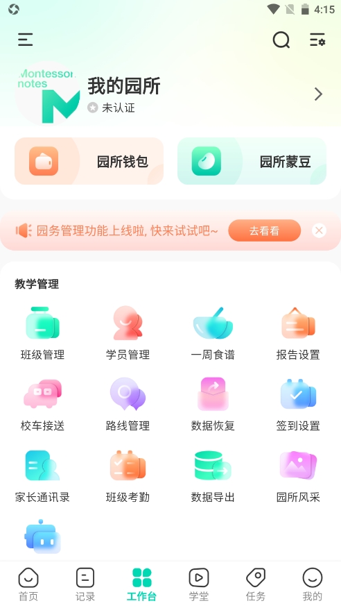 蒙氏手记app是一款简单实用的蒙特梭利观察记录工具,界面清晰,提供的功能非常全面,集观察记录、成长分析、成长报告、工作,整理分享等功能于一体,可以对每一位学生的成绩直接清晰在线了解,确保能够更加轻松设计出有针对性的教学方案,从而有效地提升教师日常工作效率。并且通过记录学生的学习进度和成果,教师可以全面评估学生的学习情况,包括作业完成情况、课堂参与度和考试成绩等,非常好用。
