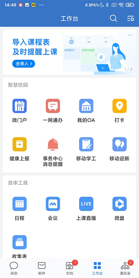 【办公与协作】开放审批、打卡、日程、微文档、微盘、会议、直播等应用接口,帮助企业提升办公效率和管理能力。